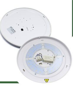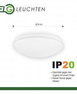 Die Opalglasleuchte kann als Wand-/ oder Deckenleuchte montiert werden und verfügt über die Schutzklasse IP20. Diese Leuchte ist auch als IP44 Variante und mit Bewegungsmelder erhältlich.