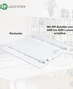 Ein weiteres herausragendes Merkmal dieses Panels ist seine EXTREME ENERGIEEFFIZIENZ. Dank eines beeindruckenden Lumen pro Watt Verhältnisses von 125 lm/W bietet das LED Rasterpanel eine außergewöhnliche Helligkeit bei geringem Energieverbrauch. Mit einer Energieeffizienzklasse von D ist es besonders energiesparend. Die Lichtstärke ist flexibel an Ihre Bedürfnisse anpassbar. Über einen DIP-Schalter können Sie die Helligkeit von 3000 Lumen bis zu 4200 Lumen einstellen.