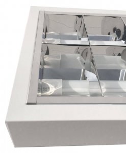 LED Rasteranbauleuchte 1200mm, 2-flammig mit Doppelparabolraster (BAP-hochglänzend).
