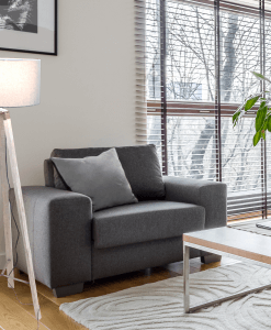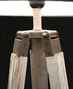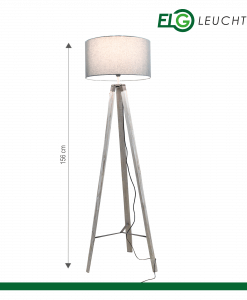 Die Wohnraum Stehlampe besteht aus hochwertigen Materialien. Der Grau / Braune Lampenschirm ist aus Stoff und der Teleskopständer aus natürlichem Holz. Die Farben der Leuchte passen sich einem natürlichen Farbkonzept hervorragend an.