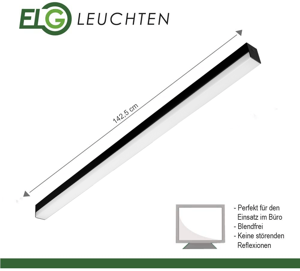 Die Maße der Leuchte betragen 1425 x 50 x 60 mm. Es werden nur hochwertige LEDs und Einbaukomponenten verwendet um eine möglichst hohe Qualität der Deckenleuchten zu gewährleisten. Durch den hohen CRI-Wert 80 gibt die Deckenleuchte ein sehr natürliches Licht im Raum ab. Der Ausstrahlwinkel beträgt 90 Grad.