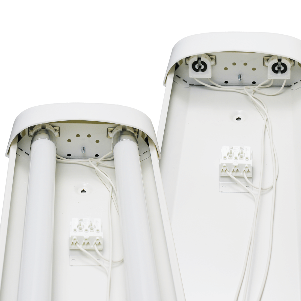 Mit den passenden LED Röhren in 3000K (Warmweiß), 4000K (Neutralweiß) oder 6500K (Kaltweiß) gewährleistet die Leuchte eine hohe Lichtleistung mit gleichzeitig geringem Stromverbrauch. Dadurch wird sehr viel Energie gespart und ist zudem noch sehr umweltfreundlich. Dabei sind Energieeinsparungen von 99% möglich. Außerdem ermöglich die LED Feuchtraumleuchte ein einfaches Wechseln der LED Röhren. Sie können werkzeuglos ausgetauscht werden.
