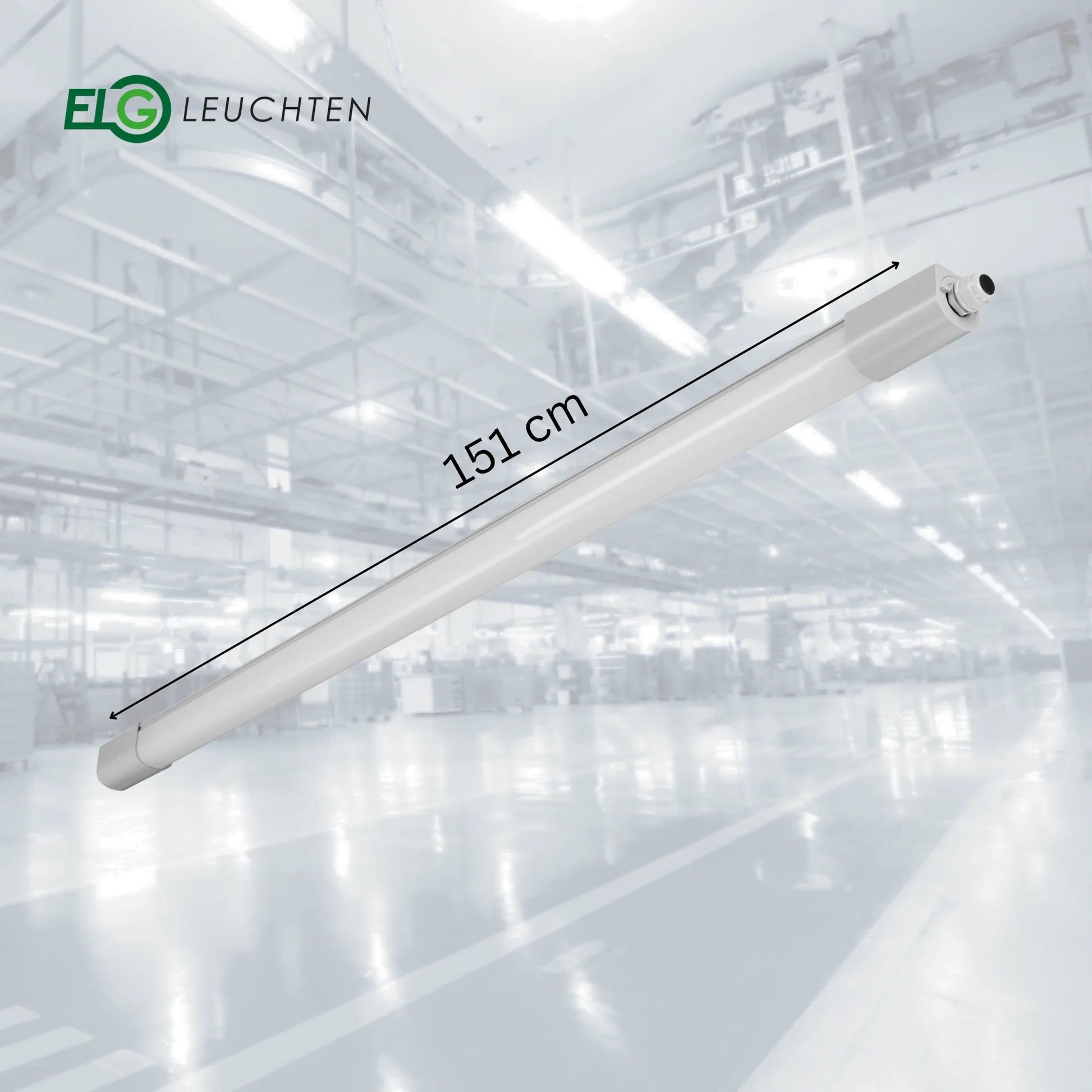Schutzklasse IP66: Unsere led feuchtraumleuchte 150cm ist mit IP66 vollständig gegen Strahlwasser und Staub geschützt, was sie ideal für feuchte und staubige Umgebungen macht. Ideal als kellerlampe led oder als led werkstatt deckenleuchte geeignet.