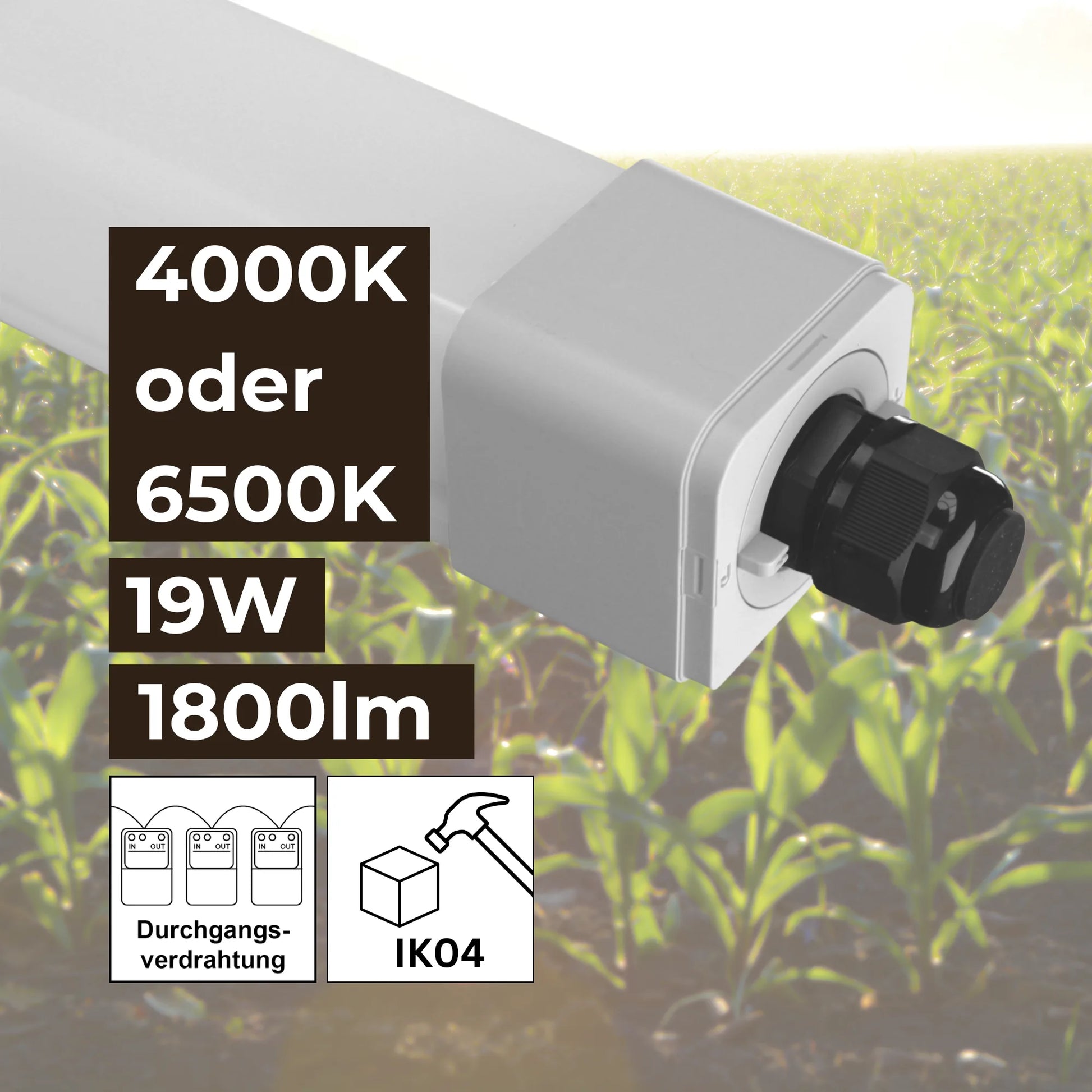 Hohe Lichtleistung: Unsere LED Feuchtraumleuchte mit 60cm Länge, 19W Leistung und 1800lm sorgt diese LED Deckenleuchte lang für eine sehr helle LED Beleuchtung. Ideal für Schweine- und Kuhställe, um eine effiziente Arbeitsumgebung zu schaffen.