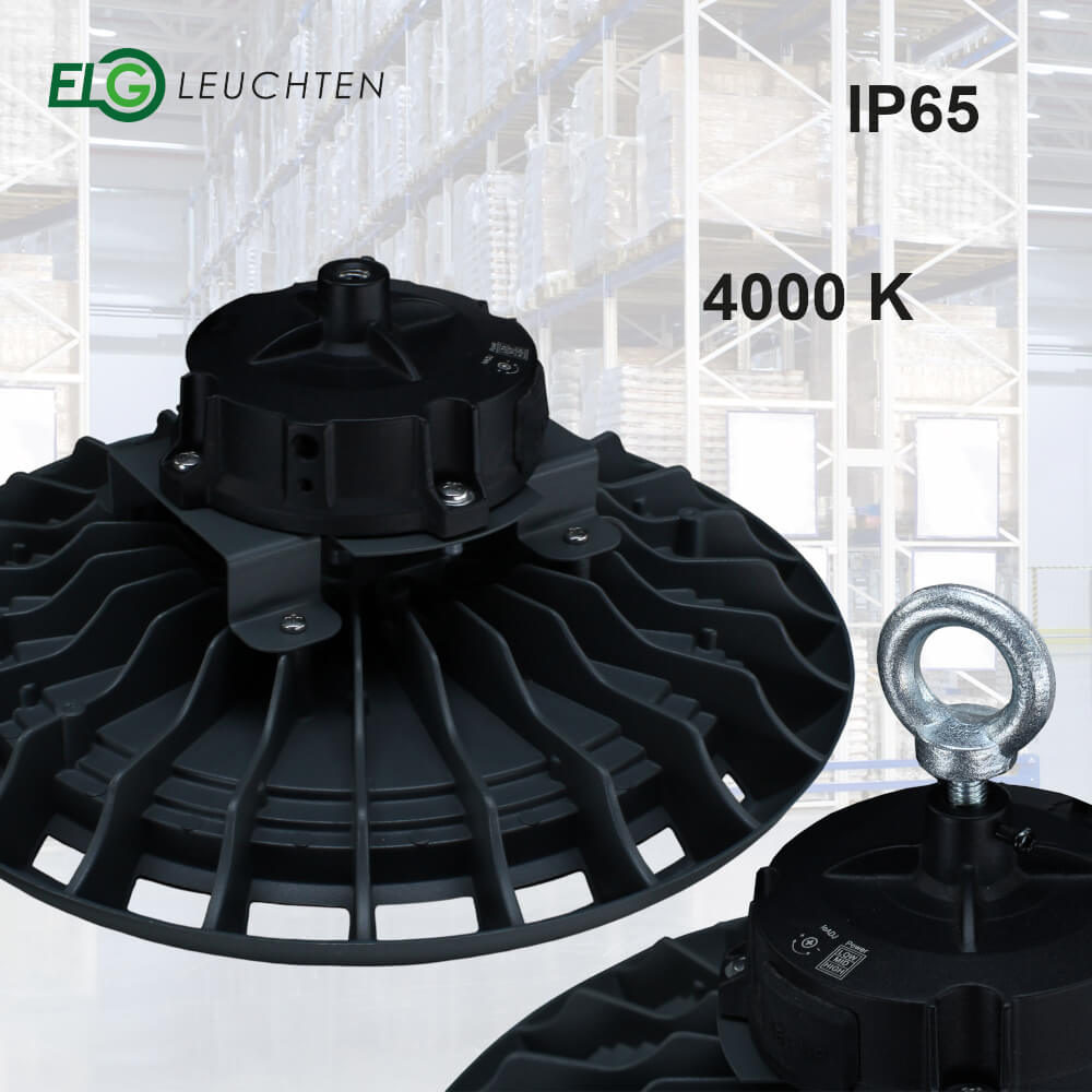 Der ELG Hallentiefstrahler ist nach IP65 zertifiziert, was bedeutet, dass er vollständig staubdicht ist und gegen Strahlwasser aus allen Richtungen geschützt ist. Diese hohe Schutzart macht den Strahler besonders geeignet für den Einsatz in anspruchsvollen Umgebungen, wo Zuverlässigkeit und Robustheit gefordert sind. Ob in Industriehallen, Werkstätten, Lagerhallen, Fitnessstudios oder Einzelhandelsgeschäften – dieser Strahler bietet eine leistungsstarke und gleichmäßige Beleuchtung für eine Vielzahl von Anwendungen.