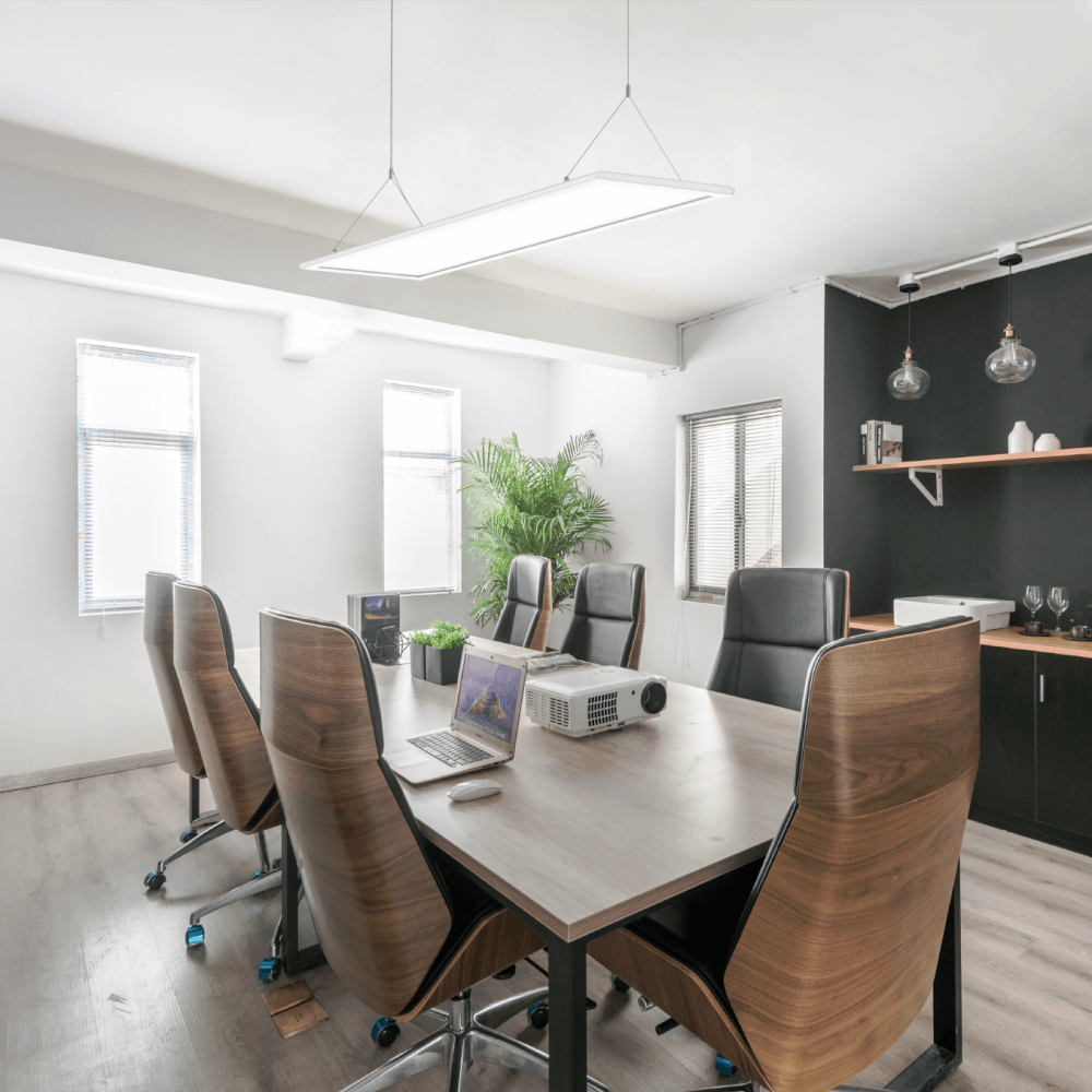 Hochwertige LED Pendelleuchte mit direktem und indirektem Lichtanteil. Der hohe indirekte Lichtanteil von 30% ermöglicht homogene Ausleuchtung des Raumes. Der direkte Lichtanteil von 70% erzeugt ein angenehmes und blendfreies Licht, welches optimal geeignet ist für Bildschirmarbeitsplätze oder Wohnräume.