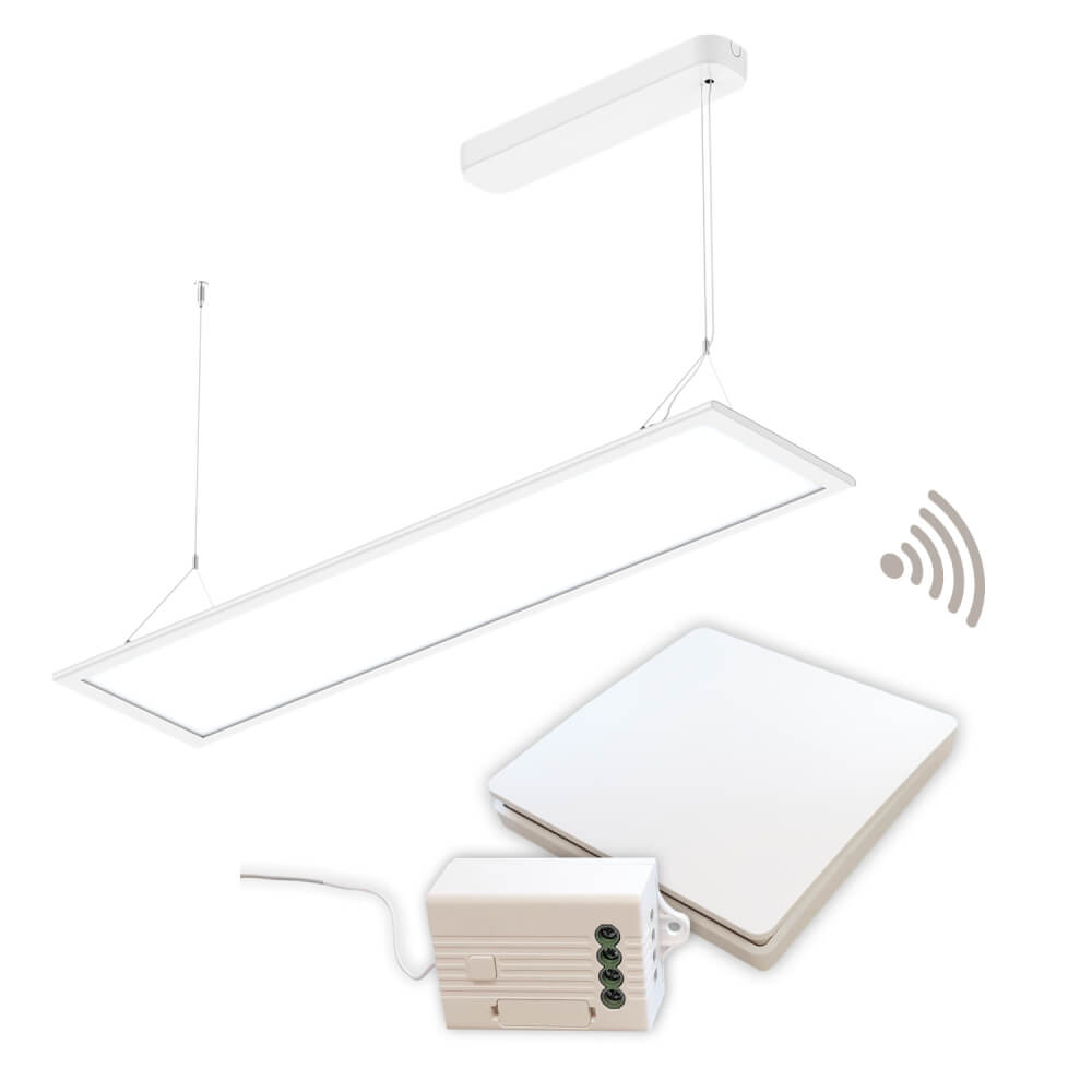 Unsere LED Pendelleuchte mit Funkschalterset können Sie vielseitig einsetzen. Absolut Kabellos und ohne Batterie. Eine tolle Alternative zu herkömmlichen Schaltern. Die Schaltersets gibt es auch einzeln in unserem Shop zu kaufen. Hier geht's zu den Funkschaltersets. Diese können Sie mit so gut wie jeder LED Leuchte in unserem Shop koppeln.