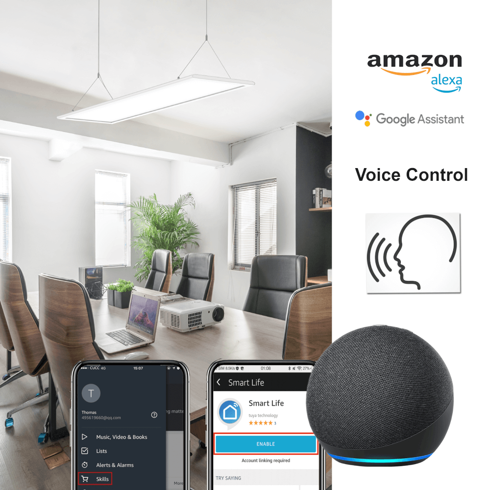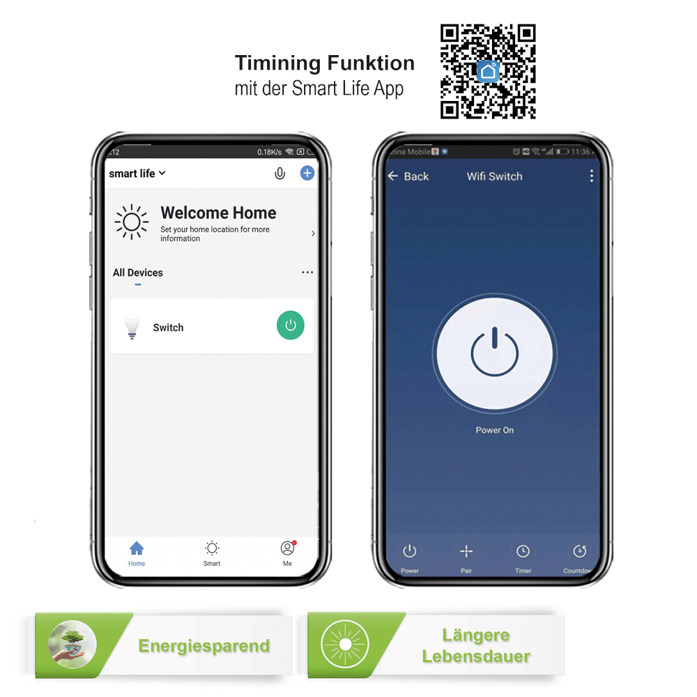 Zudem hat die LED Pendelleichte einen Schutzwert von IP67 und ist somit staubdicht und wasserfest. Die Kabellose Montage des Funkschaltersets ist sehr einfach. Sie haben die Möglichkeit den Funkschalter mit Klebestreifen oder Schrauben an die Wand zu montieren. Die Steuerung des Empfängers erfolgt mit "Smart Life" App. Zusätzlich ist die App in Kombination mit der "Amazon Alexa" App oder auch mit einem Amazon Echo und Google Assistant koppelbar. Auch eine Timinig Funktion kann eingestellt werden, das spart Energie und Stromkosten.