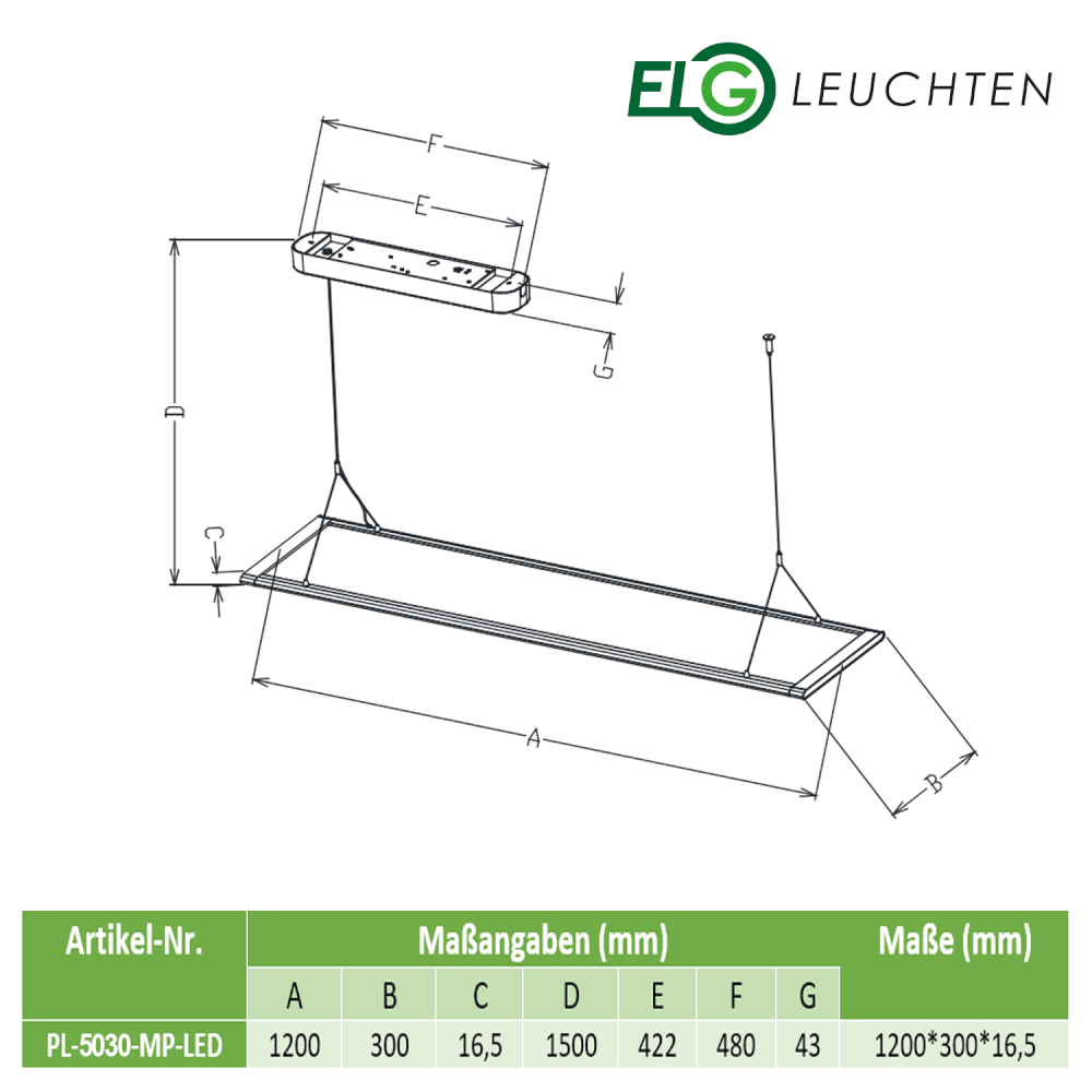 Die Leuchte bietet mit um die 100lm/Watt für eine hohe Lichtleistung bei gleichzeitig sehr geringem Energieverbrauch. Die filigrane Hängeleuchte ist mit 2 Y-Seilen von der Decke abpendelbar, welche auch höhenverstellbar ist. Der weiße Alurahmen hat eine Aufbauhöhe von 16,5 mm (1200 x 300 x 16,5 mm), was der Lampe ein elegantes Erscheinungsbild verleiht. Mit dem weißen Deckenbaldachin mit abgerundeten Ecken, wird durch einen Magnetverschluss befestigt werden (keine sichtbaren Schrauben).