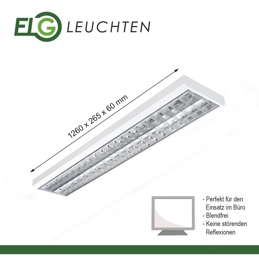 LED Rasteranbauleuchte 120cm: Ein ergonomisch gestalteter Arbeitsplatz fördert die Gesundheit und das Wohlbefinden. Gutes Licht ist dabei eine Grundvoraussetzung. Ziel einer guten Bürobeleuchtung ist es, den Arbeitsplatz den Normen entsprechend auszuleuchten und die Leuchte gleichzeitig als Gestaltungselement im Raum wirken zu lassen.