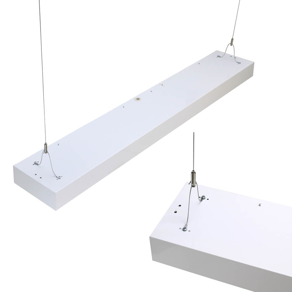 Satz Y-Pendelaufhängung für 2-flammige Rasterleuchten. Geeignet für Rasterleuchten bei einer Länge von 120 cm und 150 cm.